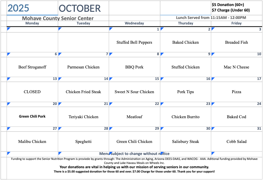 Senior Programs Coordinator for Mohave County’s Senior Nutrition Program and Site Supervisor for the LHC Senior Center.